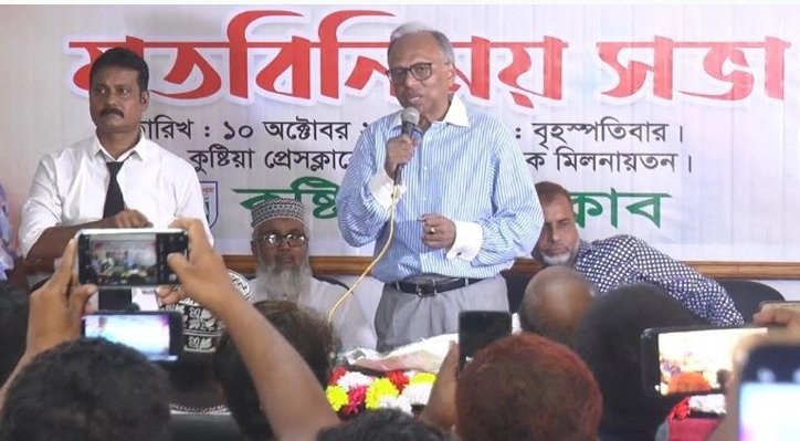 কিন্তু একটা গোষ্ঠী নির্বাচনকে প্রশ্নবিদ্ধ করতে চাই। নির্বাচনকে বিলম্বিত করতে চাই, যার ফলশ্রুতিতে কুষ্টিয়া নির্বাচন অফিসে আগুন লাগানোর চেষ্টা করেছিলো। আমরা পরিদর্শনে গিয়ে দেখতে পাই পেছনের জ্বানালা দিয়ে আগুন লাগানোর চেষ্টা করা হয়েছিলো, এটার সাথে কারা জড়িত, সিসি টিভি ফুটেজ দেখলে পরিষ্কার হওয়া যাবে। যারা এধরনের অপতৎপরতার সাথে জড়িত, তাদের চিন্হিত করে শাস্তির ব্যবস্থা করা উচিৎ। শাস্তির ব্যবস্থা করা হলে এ ধরনের কর্মকান্ড পুনরায় ঘটাতে ভয় পাবে এবং অনেকে সাবধান হয়ে যাবে। এদিকে বক্তারা বলেন, দেশনেত্রী বেগম খালেদা জিয়া গণতন্ত্র ও মানুষের অধিকার প্রতিষ্ঠার জন্য আজীবন সংগ্রাম করে যাচ্ছেন। তার সুস্থতা ও নেতৃত্ব দেশ ও জাতির জন্য অত্যন্ত প্রয়োজন। নেতাকর্মীরা সবাই ঐক্যবদ্ধ থেকে দলের আন্দোলন-সংগ্রামকে এগিয়ে নেওয়ার অঙ্গীকার ব্যক্ত করেন।