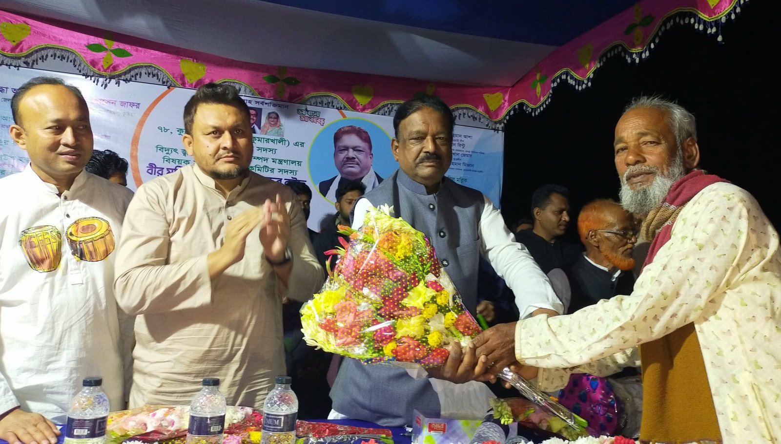 কুমারখালী প্রতিনিধি ॥ কুষ্টিয়ার কুমারখালীতে বাল্যবিবাহের অপরাধে বরের দোলা ভাইকে তিন দিনের বিনাশ্রম কারাদন্ড ও অপ্রাপ্ত বয়সে বিয়ে দেওয়ার প্রস্তুতির অপরাধে বরের অভিভাবক বাগুলাট ইউনিয়ন পরিষদের সাবেক ইউপি সদস্য আলাউদ্দিনকে ১০ হাজার টাকা অর্থদন প্রদান করেছেন ভ্রাম্যমাণ আদালত। গতকাল শুক্রবার (২৪ মে) উপজেলার চাঁদপুর ইউনিয়নের গড়েরবাড়ি ব্রিজ সংলগ্ন এলাকায় ভ্রাম্যমাণ আদালতের এক্সিকিউটিভ ম্যাজিস্ট্রেট সহকারী কমিশনার (ভুমি) আমিরুল আরাফাত এই সাজা ও জরিমানা করেন। সাজাপ্রাপ্ত বরের দোলা ভাই হলেন, ঝিনাইদহ জেলার শোলকুপা উপজেলার আনন্দ নগর গ্রামের আজমল হোসেন (৩৫)। ভ্রাম্যমাণ আদালত সূত্রে জানা যায়, শুক্রবার বিকেল সাড়ে ৩টায় উপজেলার চাঁদপুর ইউনিয়নের গড়েরবাড়ি ব্রিজ সংলগ্ন এলাকায় দশম শ্রেণিতে পড়ুয়া এক শিক্ষার্থীর বিয়ের প্রস্তুতি চলছিল। সহকারী কমিশনার (ভুমি) পুলিশ নিয়ে মেয়েটির বাড়িতে যান এবং বিয়ে বন্ধ করে দেন। সে সময় প্রশাসনের উপস্থিতি টের পেয়ে কনের মা-বাবাসহ অনেকেই বাড়ির পেছনের দরজা দিয়ে পালিয়ে যান। পরে বরের অভিভাবকের সঙ্গে কথা হলে বর ও কনেকে সেখানে হাজির করা হয়। কুমারখালী সহকারী কমিশনার (ভুমি) আমিরুল আরাফাত বলেন, বর শাকিলের সঙ্গে মেয়েটির বিয়ের প্রস্তুতি চলছিলো। বর পক্ষ কনের বাড়িতে বেলা ৩ টায় উপস্থিত হন। কনের বয়স ১৮ বছর এবং বরের বয়স ১৭ বছর। বাল্যবিবাহের খবর পেয়ে কনের বাড়িতে ভ্রাম্যমাণ আদালত পরিচালনা করা হয়। দুই পরিবারের লোকজনের সঙ্গে কথা বলে ঘটনার সত্যতা পেয়ে বাল্যবিবাহের অপরাধে বরের দোলা ভাইকে তিন দিনের বিনাশ্রম কারাদন্ড ও বরের অভিভাবককে ১০ হাজার টাকা অর্থদন্ড প্রদান করা হয়েছে।