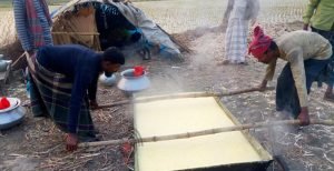 তীব্র শীত উপেক্ষা করে গুড় তৈরিতে ব্যস্ত সময় পার করছেন কুষ্টিয়ার ভেড়ামারার আখ চাষিরা। শীত মৌসুম এলেই শুরু হয়ে যায় সুস্বাদু আখের গুড় তৈরির কাজ। একদিকে আখ কেটে সংগ্রহ করা হচ্ছে, অন্যদিকে কেটে আনা আখ থেকে মেশিনের মাধ্যমে রস সংগ্রহ করে সেই রস জাল দিয়ে তৈরি করা হচ্ছে গুড়। শীত বাড়তেই বাঙালির ঘরে শুরু হয়েছে পিঠা-পুলির মহোৎসব।