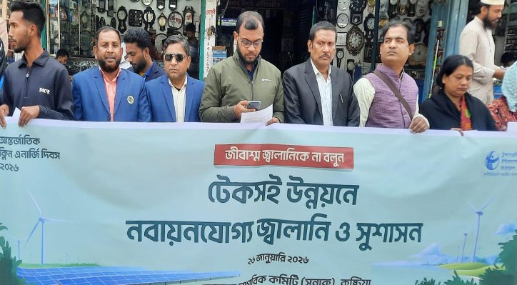 কুষ্টিয়ায় ভারতপন্থী আ’লীগের রাজনীতি নিষিদ্ধকরণ ও জুলাই গণহত্যার বিচারের দাবীতে মানববন্ধন