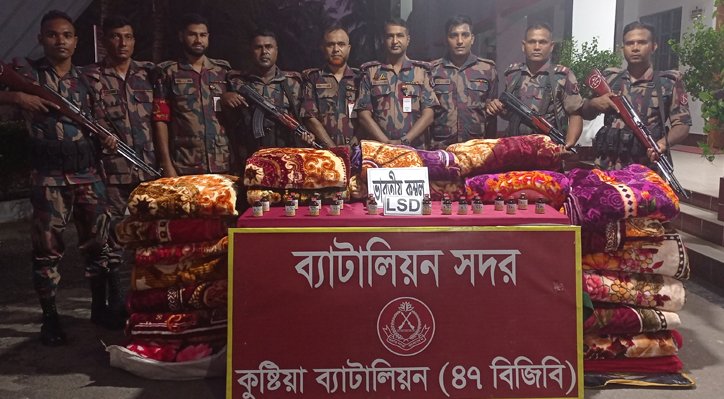 নিজ সংবাদ ॥ কুষ্টিয়ার দুই মাদক ব্যবসায়ী ২১০ বোতল ফেনসিডিল সহ সিরাজগঞ্জ ডিবি পুলিশের কাছে গ্রেফতার হয়েছে। গ্রেফতার কৃতরা হলেন, দৌলতপুর উপজেলার মথুরাপুর ইউনিয়নের হোসেনাবাদ কান্দিরপাড়া গ্রামের মোঃ মহিদুল ইসলাম মধু’র ছেলে মোঃ মাকসুদুর রহমান কিরন (২৫) এবং একই উপজেলার বেজপুর গ্রামের মোঃ শহিদুল ইসলামের ছেলে ইউসুফ আলী সবুজ (২৯)। সিরাজগঞ্জ ডিবি পুলিশ সূত্রে জানা যায়, ডিবির অফিসার ও ফোর্সসহ সিরাজগঞ্জ থানা এলাকায় মাদকদ্রব্য উদ্ধার অভিযান কালে গত ৯ মার্চ রাত সাড়ে ১০ টার সময় সিরাজগঞ্জ থানাধীন ১০ নং সয়দাবাদ ইউনিয়নের অন্তর্গত সদানন্দপুর গ্রামস্থ মিয়াবাড়ী মার্কেটের সামনে কড্ডার মোড় হতে সিরাজগঞ্জ শহরগামী পাকা রাস্তার উপর থেকে ২১০ বোতল ফেনসিডিলসহ তাদের গ্রেফতার করা হয়। উল্লেখ্য, গ্রেফতারকৃত মাদক ব্যবসায়ী মোঃ মাকসুদুর রহমান কিরন (২৫) এর পিসি/পিআরঃ মোতাবেক তার বিরুদ্ধে ০৪টি মাদক মামলা বিজ্ঞ আদালতে বিচারাধীন আছে।
