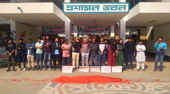 নিজ সংবাদ ॥ কুষ্টিয়ার দৌলতপুরে বিল দখল করতে গিয়ে গণপিটুনিতে কুষ্টিয়া জেলা ছাত্রলীগের সাধারণ সম্পাদকসহ অন্তত ছয়জন আহত হয়েছে এবং কুষ্টিয়ার দৌলতপুর উপজেলার বোয়ালিয়া ইউনিয়নের বোয়ালিয়া বিলের (জলমহাল) দখল নিতে গিয়ে সাহেদ হোসেন (২২) নামের জেলা ছাত্রলীগের এক কর্মী গুলিবিদ্ধ হয়েছেন। গুলিবিদ্ধ শাহেদকে কুষ্টিয়া জেনারেল হাসপাতালে ভর্তি করা হয়েছে। তিনি কুষ্টিয়া জেলা ছাত্রলীগের সাধারণ সম্পাদক হাফিজ শেখ চ্যালেঞ্জের সমর্থক ও শহরতলীর মোল্লাতেঘড়িয়া এলাকার মহিবুল ইসলামের ছেলে। গতকাল শুক্রবার (১৯ এপ্রিল) বেলা ১১টার দিকে উপজেলার বেয়ালিয়া ইউনিয়নের বিল বোয়ালিয়া গ্রামে এ ঘটনা ঘটে। সংবাদ পেয়ে পুলিশ গিয়ে পরিস্থিতি স্বাভাবিক করে। স্থানীয়রা জানান, বোয়ালিয়া বিলের প্রায় ১৭ একর আয়তনের একটি অংশ গত ৫ বছর ধরে ভোগদখল নিয়ে মাছ চাষ করে আসছিলেন বোয়ালিয়া ইউনিয়নের ৮ নম্বর ওয়ার্ড যুবলীগের সাধারণ সম্পাদক আব্দুল মতিন মীর। এবারো তিনি ওই বিলে মাছ চাষ করেন। তার দখলকৃত অংশের ১২ একর খাস জমি থাকায় তা সরকারের কাছ থেকে নিজ নামে লিজ নেন জেলা ছাত্রলীগের সাধারণ সম্পাদক শেখ হাফিজ চ্যালেঞ্জ। শুক্রবার সকালে জেলা ছাত্রলীগের সাধারণ সম্পাদক শেখ হাফিজ চ্যালেঞ্জ জেলা ছাত্রলীগের কর্মীদের নিয়ে বিল দখল করে মাছ ধরতে যায়। খবর পেয়ে আব্দুল মতিন মীর তার লোকজনকে নিয়ে শেখ হাফিজ চ্যালেঞ্জ ও তার লোকজনকে ধাওয়া করে। এ সময় সংঘর্ষে জেলা ছাত্রলীগের সাধারণ সম্পাদকসহ উভয় গ্র“পের অন্তত সাতজন আহত হয়। আহতদের কুষ্টিয়া ও দৌলতপুর হাসপাতালসহ স্থানীয়ভাবে চিকিৎসা দেয়া হচ্ছে। এর মধ্যে একজনের অবস্থা আশঙ্কাজনক বলে জানা গেছে। জেলা ছাত্রলীগের সাধারণ সম্পাদক শেখ হাফিজ চ্যালেঞ্জ বলেন, সরকারী বিধি মোতাবেক তিনি ওই বিল লিজ নিয়েছেন। চলতি ১ বৈশাখ থেকে ওই বিলের জমি ভোগদখল পাওয়ার কথা। দখলদার মতিনকে বারবার তাগিদ দেয়ার পরও তিনি বিল হস্তান্তর করেনি। বিল বরাদ্দ পাওয়ার পর সেখানে কিছু মাছের পোনা ছেড়েছি। শুক্রবার সকালে লোকজন নিয়ে বিলের কাছে গেলে আব্দুল মতিন ও তার লোকজন হামলা চালিয়ে কয়েকজনকে আহত করেন। আব্দুল মতিন মীর বলেন, দীর্ঘ ৫ বছর ধরে বিলের একটি অংশে মাছ চাষ করে আসছেন। বর্তমানে বিলে তার প্রায় ১০ লাধিক টাকার মাছ রয়েছে। চাষকৃত অংশের প্রায় ৯ একর জমির মালিকানা তার। কাউকে কিছু না জানিয়ে শুক্রবার কুষ্টিয়া শহর থেকে ছাত্রলীগের কর্মীদের ভাড়া করে নিয়ে এসে বোমাবাজি করে জোরপূর্বক বিল দখল ও মাছ লুট করতে আসে শেখ হাফিজ চ্যালেঞ্জ। এত ক্ষুব্ধ এলাকাবাসী তাদের ধাওয়া করে। দৌলতপুর থানার অফিসার ইনচার্জ (ওসি) রফিকুল ইসলাম বলেন, বিলকে কেন্দ্র করে জেলা ছাত্রলীগের সাধারণ সম্প