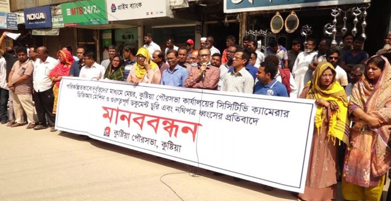 কুষ্টিয়া পৌরসভা মেয়রের কার্যালয়ে চুরির ঘটনায় দোষীদের শাস্তির দাবীতে মানববন্ধন