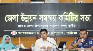 রঞ্জুউর রহমান ॥ কুষ্টিয়া জেলা প্রশাসকের সম্মেলন কক্ষে জেলা মাসিক জেলা উন্নয়ন সমন্বয় কমিটির সভাসহ একাধিক সভা অনুষ্ঠিত। গতকাল রবিবার (১৯ মে) সকাল দশটায় কুষ্টিয়া জেলা প্রশাসকের সম্মেলন কক্ষে জেলা প্রশাসক এহেতেশাম রেজা সভাপতিত্বে মাসিক জেলা উন্নয়ন সমন্বয় কমিটির সভাসহ অর্থনৈতিক শুমারী-২৩ উপলক্ষ্যে জেলা শুমারী কমিটির সভা,তথ্য অধিকার বাস্তবায়নে অবেক্ষন (ংঁঢ়বৎারংরড়হ) ও পরিবীক্ষন কমিটির সভা,জাতীয় শুদ্ধাচার কর্ম কৌশল বাস্তবায়নে সুশাসন প্রতিষ্ঠার লক্ষ্যে ঝঃধশবযড়ষফবৎ অংশীজনের সভা,অর্থনৈতিক শুমারী-২৩ উপলক্ষ্যে জেলা শুমারী কমিটির সভা,অনুষ্ঠিত হয়।