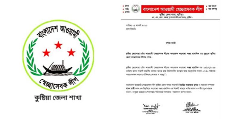 জেলা শ্রমিক লীগ ১৭ই আগস্ট সন্ত্রাস জঙ্গিবাদ সিরিজ বোমা হামলার প্রতিবাদে কুষ্টিয়া আদর্শ কলেজ মোড়ে মহিলা শ্রমিক লীগের কার্যালয় কুষ্টিয়া জেলা শ্রমিক লীগের প্রতিবাদ সভায় সন্ধ্যা ৭ ঘটিকার সময় অনুষ্ঠিত হয়।